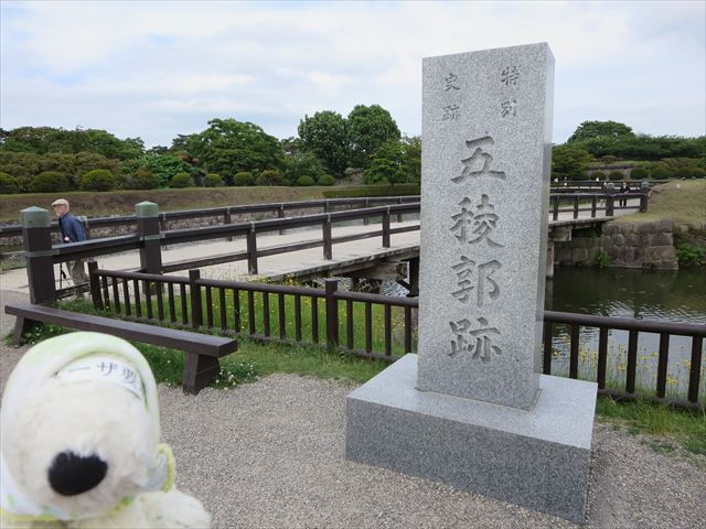 稜堡と呼ばれる5つの突角が星形の五角形状に土塁がめぐっていることから、五稜郭と呼ばれています。
